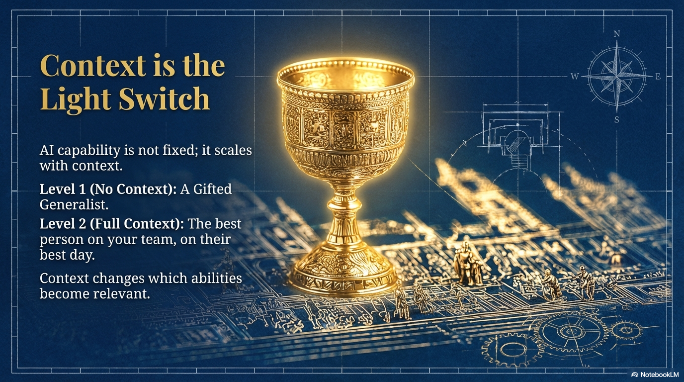 This is why most AI deployments are disappointing. Companies buy licenses, hand everyone a chatbot, and call it transformation. The AI is already good enough. It has been for a while. The bottleneck was never capability. It was context.