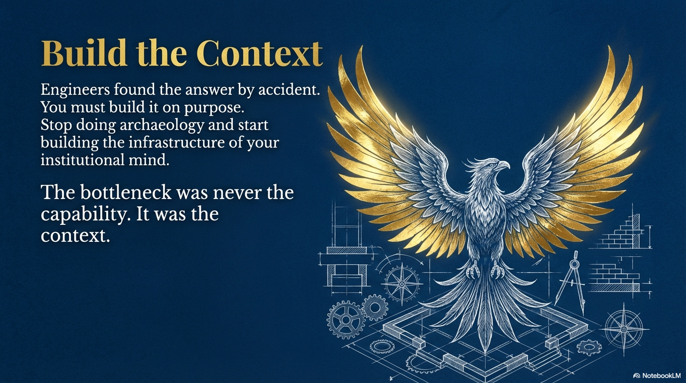 Engineers found out first because they'd spent forty years, entirely by accident, building the context infrastructure that made the answer visible. The rest of us will need to build it on purpose. The ones who start now will have their dark-mode-in-an-evening moment. The ones who wait will keep wondering why the AI feels like a disappointing intern.