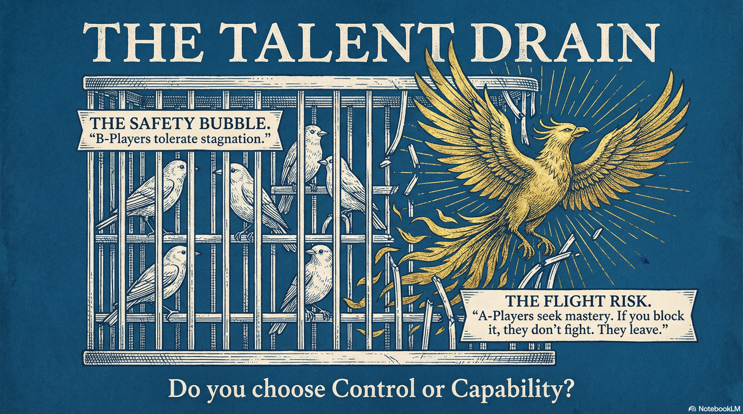 Research on what drives top talent out is consistent: it's rarely money. It's autonomy, mastery, and the ability to do meaningful work. Block those and commitment erodes fast. One study found that high performers were far more likely than average performers to cite lack of advancement opportunities as a reason to leave. B-players tolerate stagnation. A-players don't.